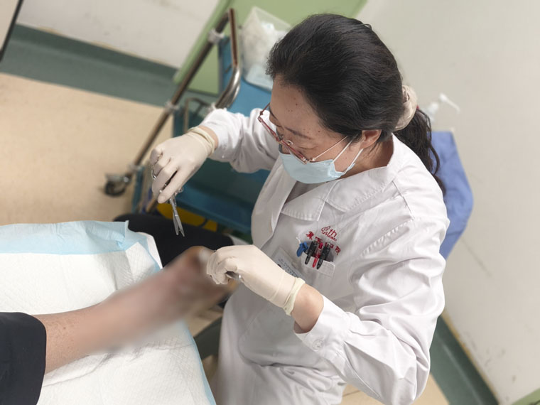 年关将至,丁海霞主任医师精准施治,成功为患者开通膝下血流,直达足底。患者很快感受到足部久违的暖意,创面也日渐好转。