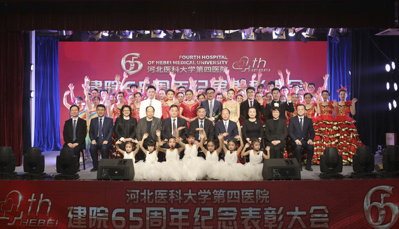我院用精心准备的配乐朗诵《大医精诚》,舞台剧《战癌壮歌》、《心系赞皇》,舞蹈《迈进新时代》、《红烛》、《共圆中国梦》,民乐演奏《良宵》,歌曲《为了谁》,快板表演《医路逐梦》,合唱《河北医大四院院歌》,大型歌舞《白衣薪火》以及老前辈和青年人拍摄的祝福视频等形象生动地展现出一代代四院人在不同历史时期,用医者仁心和大爱无疆诠释医学誓言的感人事迹,表达了对建院65周年的热情庆祝和殷切祝福。现年85岁的林元珠教授在接受采访时说:“能够参加建院65周年纪念表彰大会让我感到非常荣幸,支撑我在医学领域不断探索、努力工作的动力就是因为我有为共产主义事业奋斗终生的伟大信仰。希望年轻的四院人能够胜过我们,长江后浪推前浪,一代更比一代强。”
